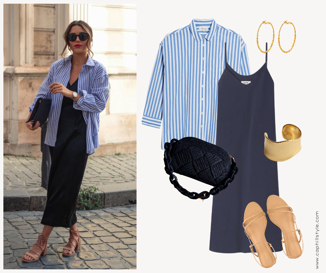 Striped Top // A striped button up top is a summertime MVP. You can wear it as a pool cover, to the office, or layered over a cute dress. Madwell’s oversized shirt is always a great pick. Express has a slightly more refined version with a medium-width stripe for $35.