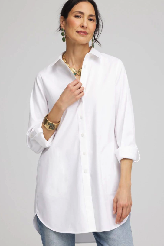 Also, the weather won’t be searing hot forever. In two months, you’re going to be holding a pair of leggings in one hand and searching for a top that looks nice enough to be seen in with the other. And here it is, a No Iron pocket tunic. Full length. Good tailoring. Toss on, and go.