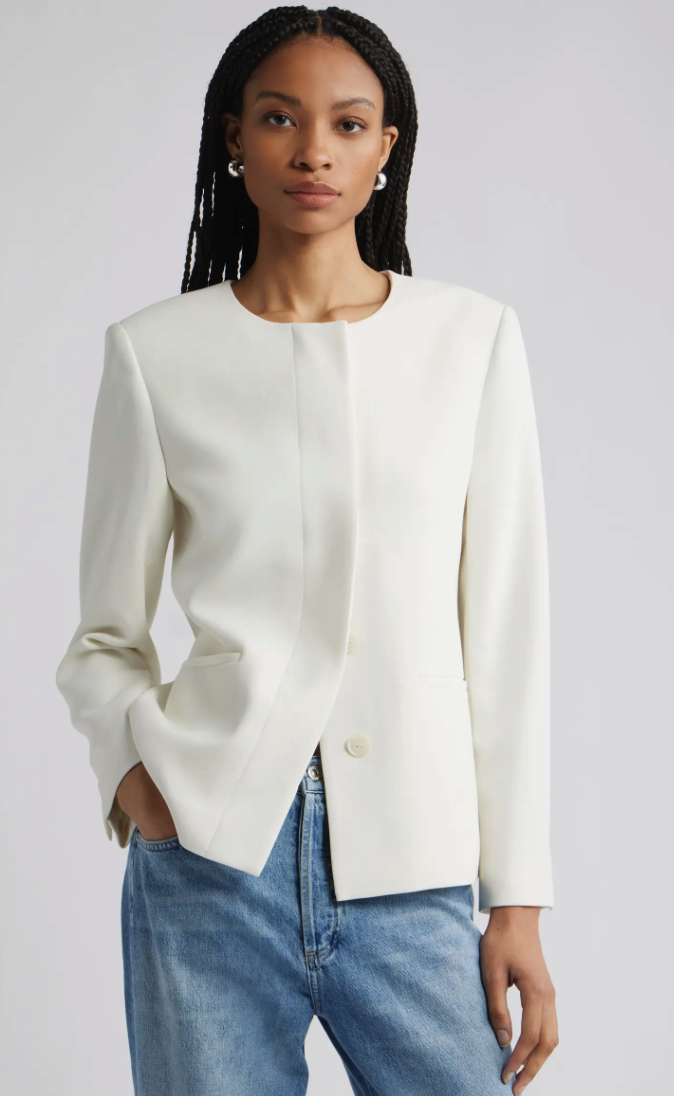 I bought this collarless blazer at the Anniversary Sale and it’s bliss. I ordered the ivory and wish I had also ordered the black, but I am happy to pay full price for it. I also own the Ingrid blazer in two colors, which is more oversized and modern, but still a great suit once it gets a little tailoring from the capable hands of Nordstrom alterations. I love that these blazers are <$200, come with multiple options for bottoms, and are offered in a selection of neutral colors. I love a unique suit as much as the next woman (maybe more), but I am restocking basics so I need neutrals.