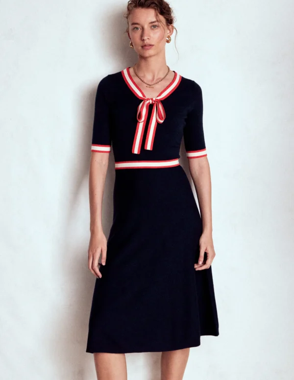 This tipped bow dress has a simple elegance. It’s a very feminine choice for the office.