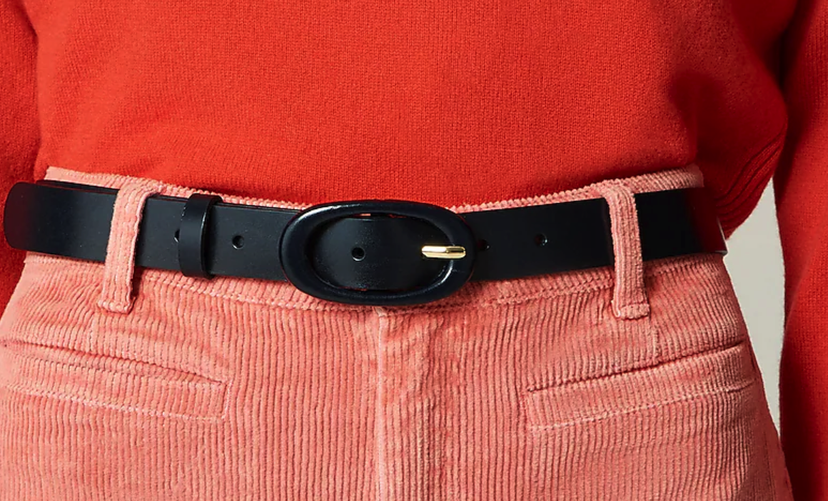 At $125+ for a belt, B-Low is a pricier option. But I’ve been impressed with the quality of both of the belts that I’ve purchased. For comparable quality in a less-spendy package, J.Crew is always my first stop. I really like this Tonal Buckle Belt for those times when you really don’t want a piece of metal flashing at you. I think it’s the perfect choice for a subtle pantsuit or a more refined dress. The belt comes in four versatile colors.