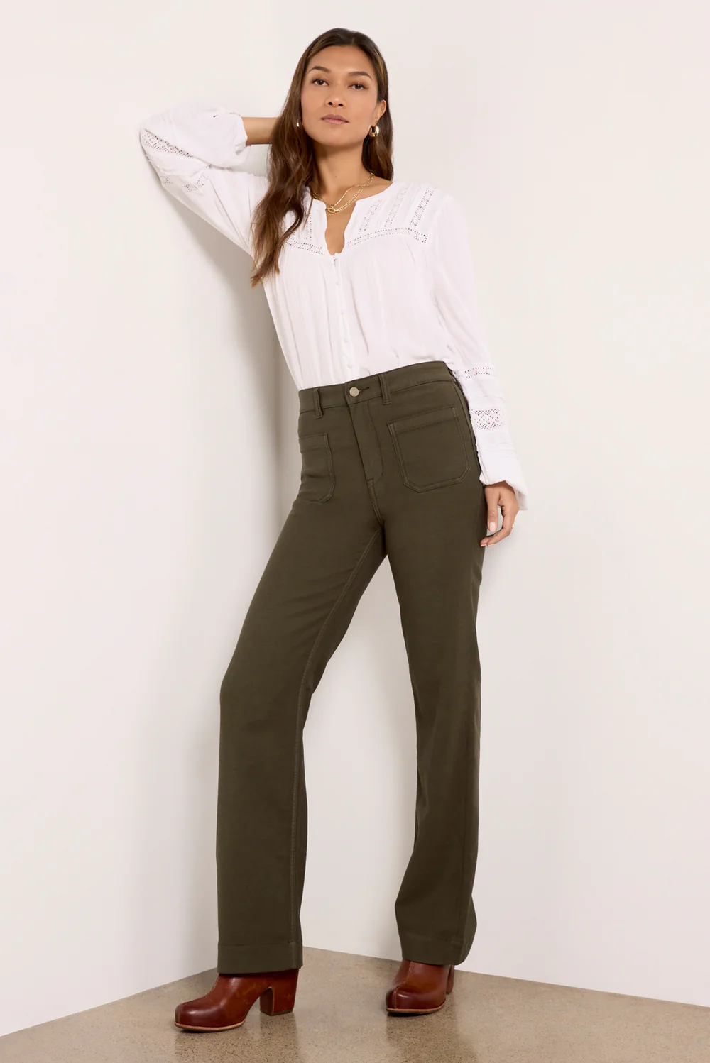 I went to Nordstrom to buy a lipstick. I saw these Paige wide leg jeans on the mannequin, and I had to try them on.