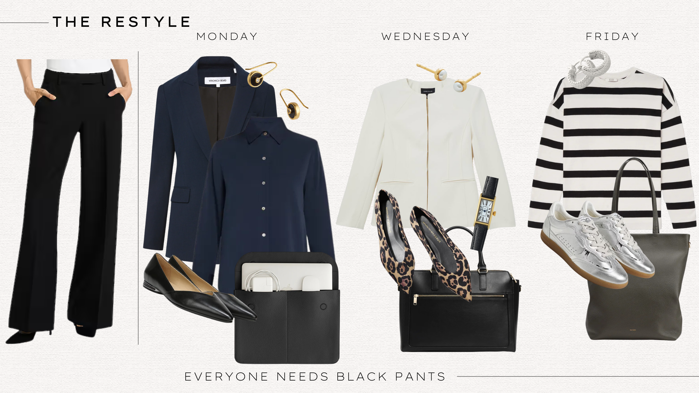 On the one hand, it feels like everything goes with black pants. On the other hand, it’s easy to fall into a rut and feel like you’re living in fashion Groundhog’s Day. So let’s talk about my three favorite outfits to wear with black pants.