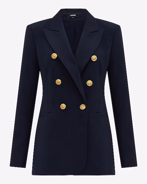 This Navy jacket from Express is a great piece. Comfortable. Easy to wear. Looks nicer than it is. I may have the buttons replaced to make it look even nicer.