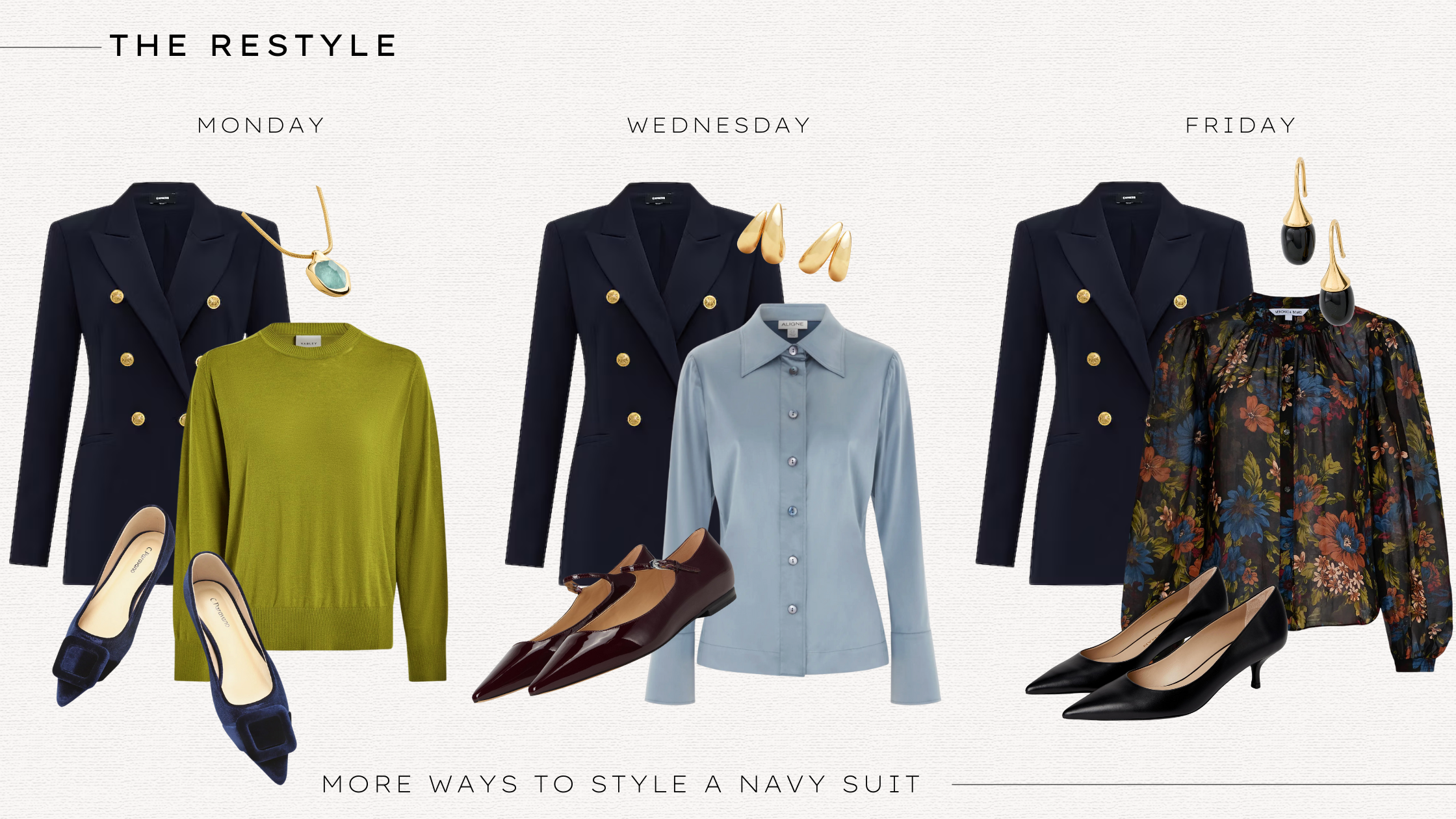I have leaned heavily on my navy suit to get me through this session. Most mornings, I find myself standing in front of my closet, just throwing things together in a rush, and I’m always surprised how many things I can pair with navy. So here are a few of my favorites.