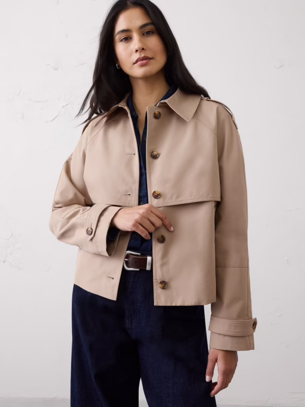 It’s spring. So let’s have a conversation about the coolest jacket for spring: the cropped trench. Here are several styles in different price points and size ranges.
