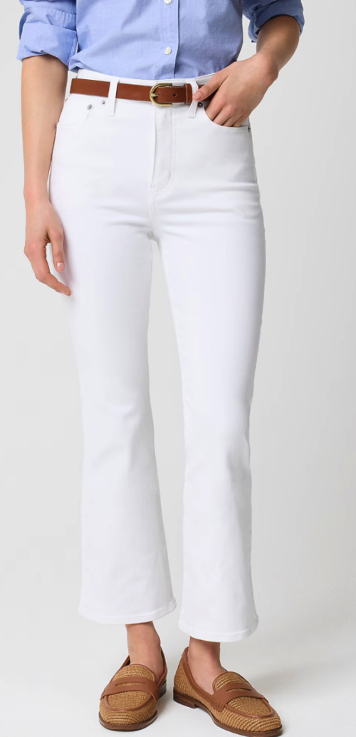 These ankle-kick flares from J.Crew Factory are a fun, affordable jean for spring and summer. They’re ankle-length, not cropped, so they won’t make your legs look stubby. They also come in petite and tall, so you can get the right hem length.