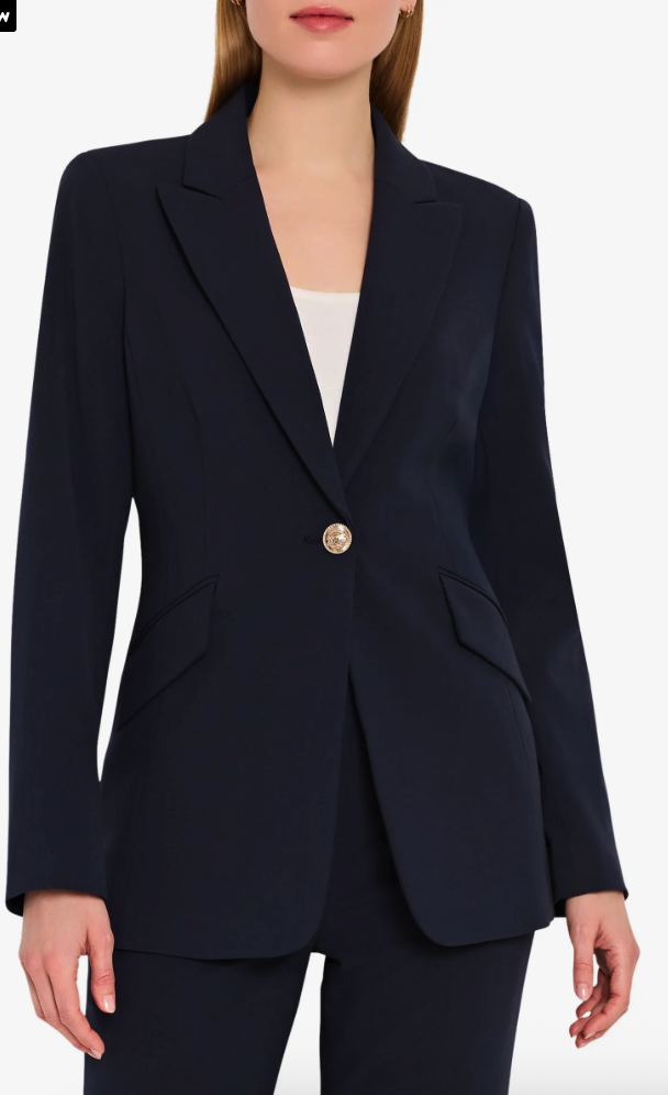 I love the cut of this navy Tahari blazer. Sleek, one button, perfectly placed pockets. A great blazer, especially for ~$150.