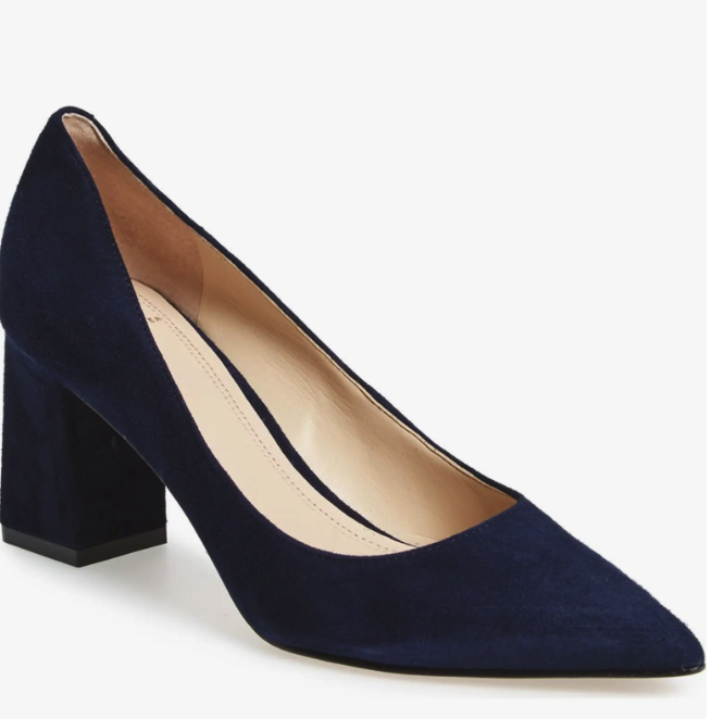 If you love a navy suit, a navy heel is a must have. This pair from Marc Fisher have a block heel for stability, and the 3″ heel is a great mid-height.